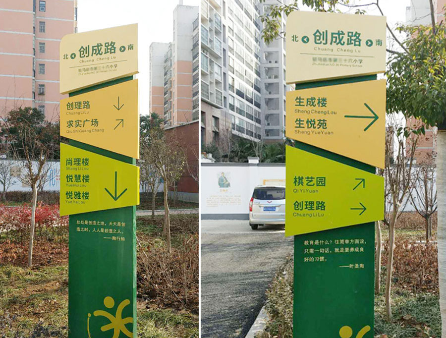隨著教育事業的發展,學校標識標牌悄然闖入眾多校園,它是提高學校輔助教育的硬件設施并已融入校園文化中。在校園內外空間中,不同顏色、不同樣式、不同功能的校園標識隨處可見,為不同的環境起著指引、指示、說明、提醒等作用,并通過圖文并茂的方式使得來自不同國家的學生跨越了語言障礙,為不同國家和民族的人們之間的交流提供了不可小視的作用。